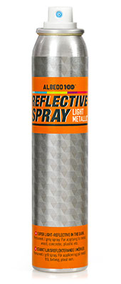 Albedo100 Light Metallic is a spray with light-reflective properties that sticks to most surfaces, and resists wind and rain. The spray is UV-resistant and is durable on materials such as wood, concrete, metal, stone etc.